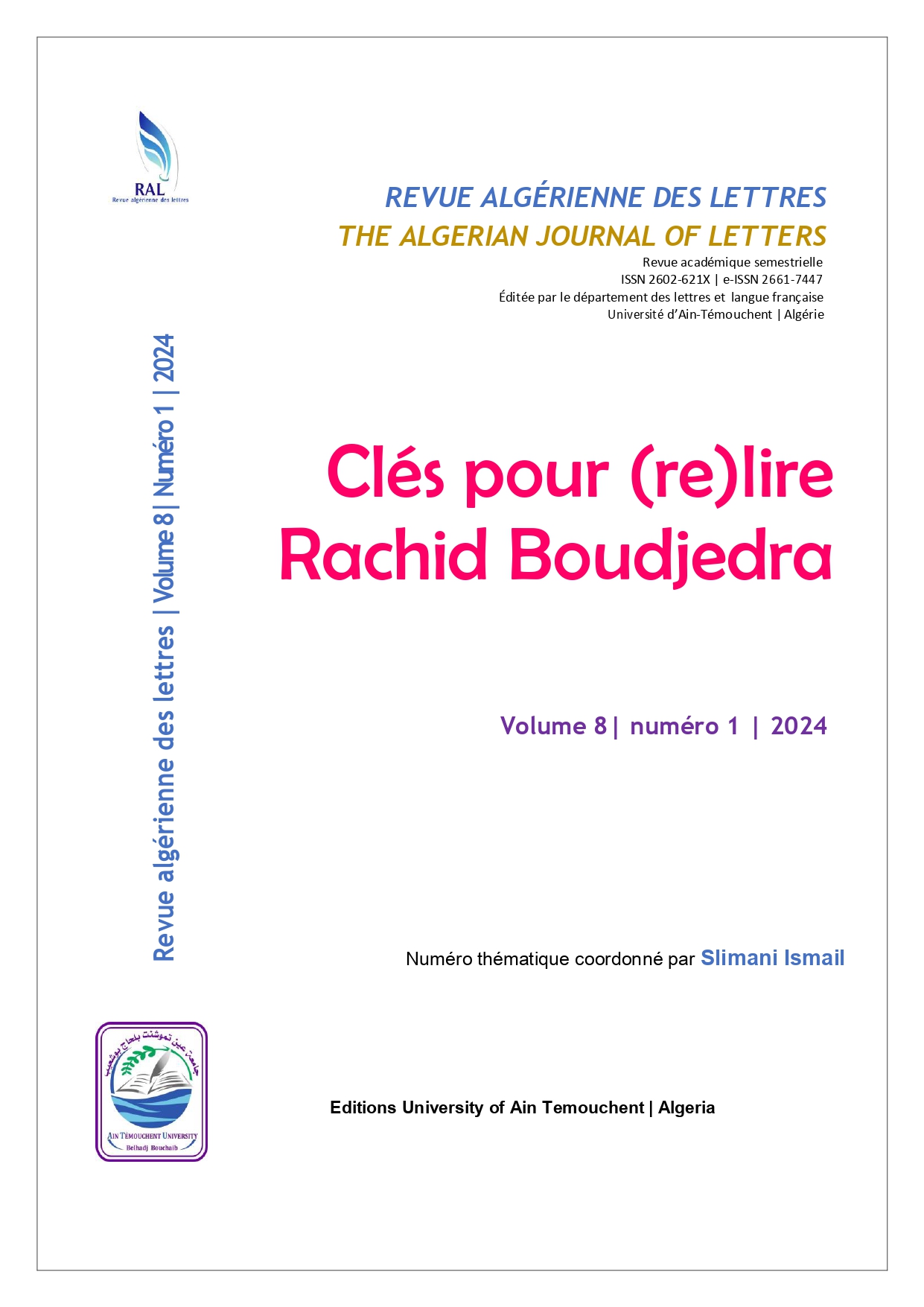 Vol. 8 No 1 (2024): Clés pour (re)lire Rachid Boudjedra